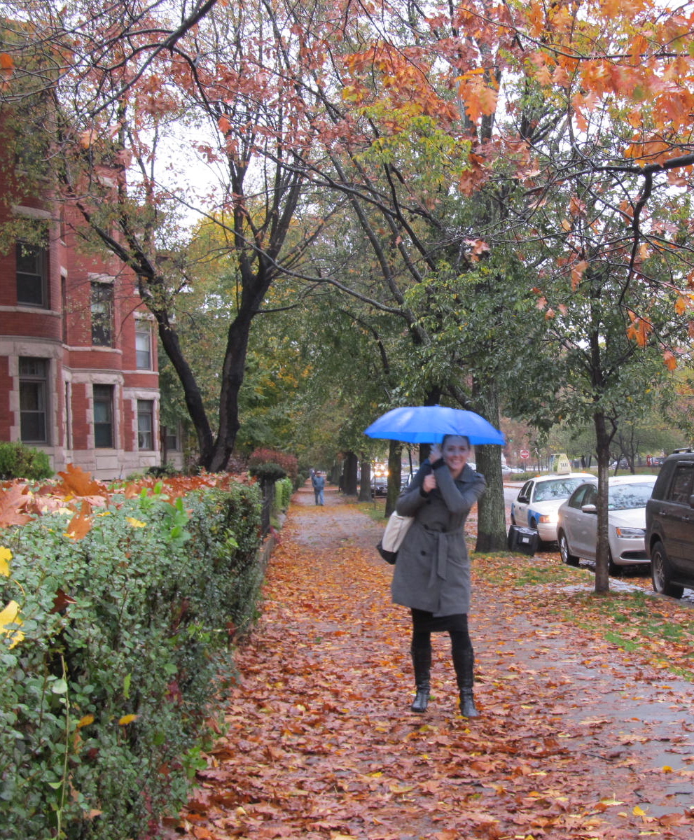 Day 5 was postponed because Hurricane Sandy caused the libraries to close for the day. Here I am happily walking home to my husband after realizing that school was cancelled: