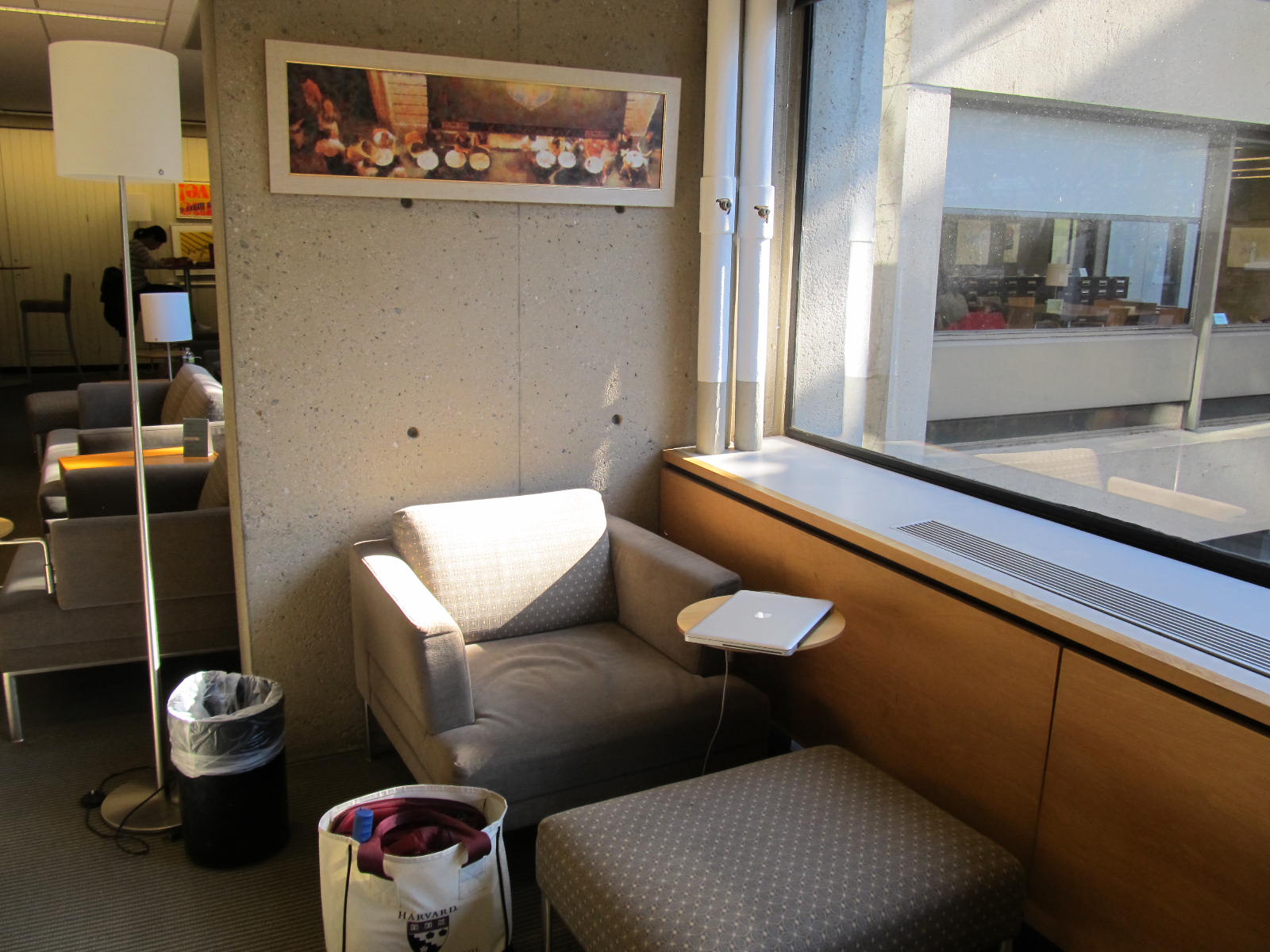 - Con: I really liked the desks facing the windows, but there were no outlets for my laptop. While the carrel where I ended up working was private and spacious, it wasn’t very comfy or atmospheric.