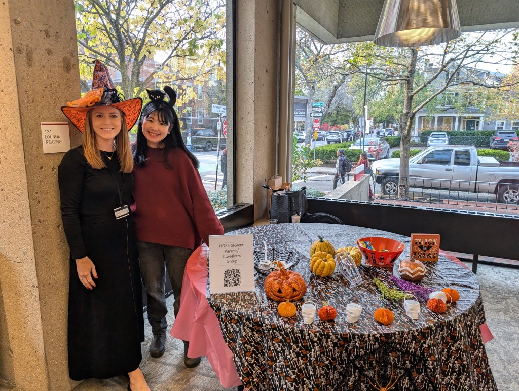 So far, we have been working with the HGSE Office of Diversity, Equity, and Inclusion to recruit more members, and have also been trying to connect with HGSE student parent caregivers through both a WhatsApp group and Slack. We are hoping to plan quarterly parent meetings and events for families on campus. Wednesday, October 30th from 3-5pm we hosted a Halloween table at the HGSE Spooktacular, where all children were welcome and we met some new parent/caregivers to join our group.